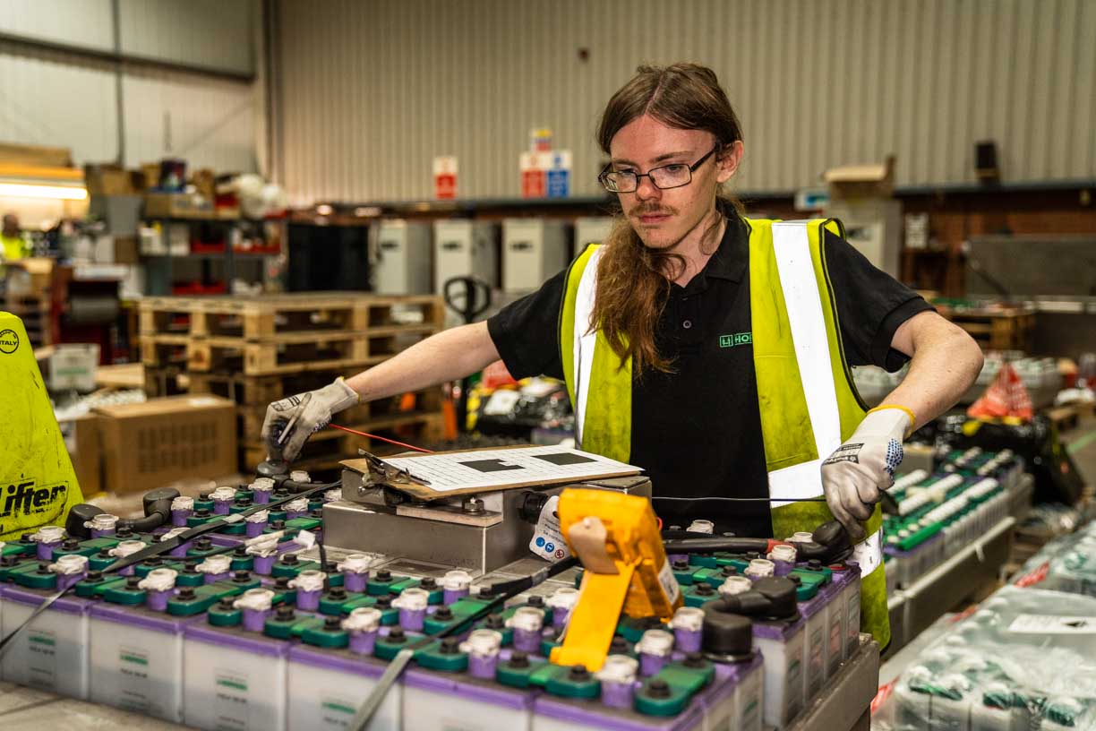 We currently have high demand for new and refurbished batteries in the rail network, as reserve power or for hybrid or battery-powered trains. So our train battery team is working hard at our Stoke depot.
